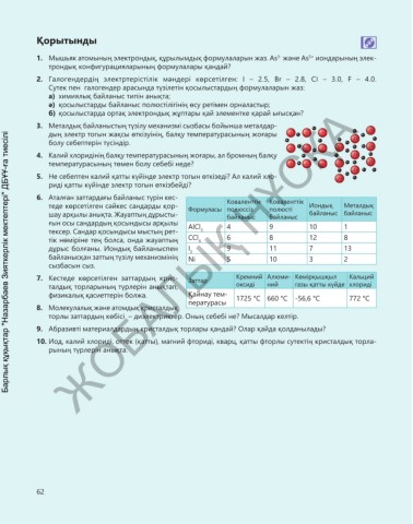 5. Не себептен калий қатты күйінде электр тогын өткізеді? Ал калий хло-