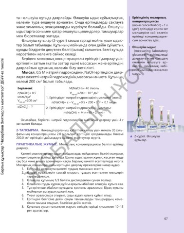 та – өлшеуіш құтыда даярлайды. Өлшеуіш ыдыс сұйықтықтың Ерітіндінің молярлық