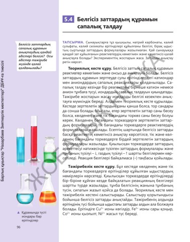 бойынша белгісіз заттарды анықтайды. Тәжірибенің алдында