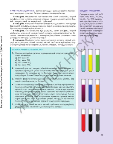 карбонаты, алюминий хлориді, барий нитраты ерітінділері құйылған. Қо- құрастыр. Сапалық реак-