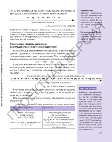 Таблица 1. Взаимодействие металлов с простыми веществами даже при отсоединении от