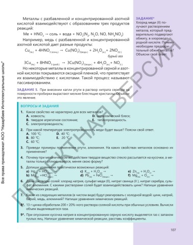 Металлы с разбавленной и концентрированной азотной ЗАДАНИЕ*