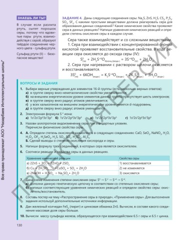 б) напиши соответствующие уравнения химических реакций и определи свойство серы: окис-
