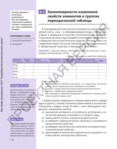 нения галоген с низкой ре- в) увеличивается количество энергетических уровней и со-