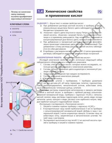 1. Составь список свойств кислот, которые можно исследовать, ис-