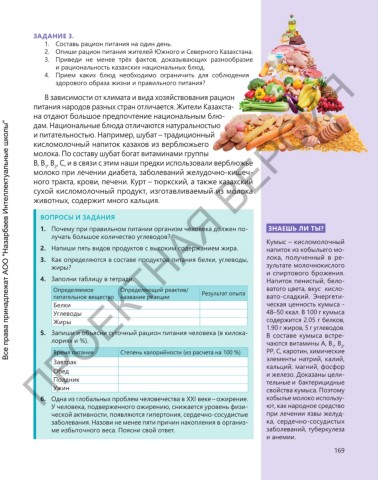 5. Запиши и объясни суточный рацион питания человека (в килока- В составе кумыса встре-