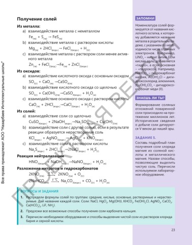 Получение солей ЗАПОМНИ