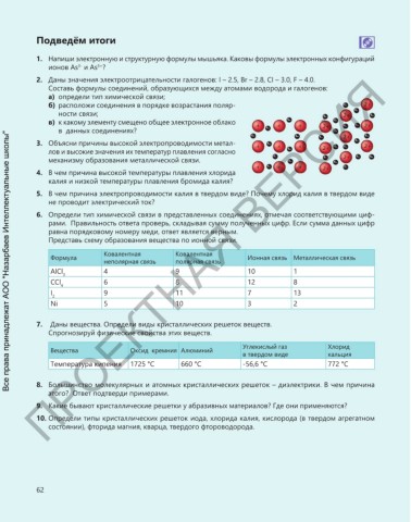 10. Определи типы кристаллических решеток иода, хлорида калия, кислорода (в твердом агрегатном