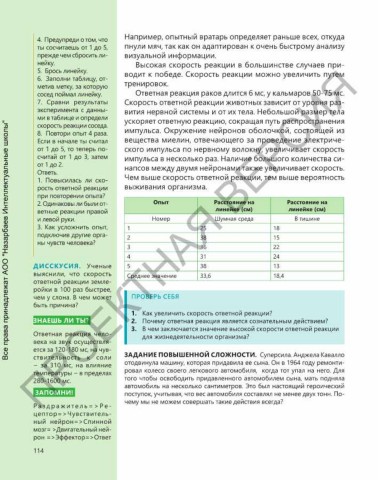 7. Сравни результаты Скорость ответной реакции животных зависит от уровня раз-