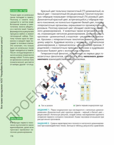 ЗАДАНИЕ 1. Перья андалузских кур наследуются с неполным домини-