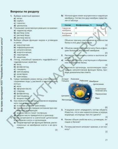 1. Выбери животный крахмал: b) Митохондрия имеет внутреннюю и наружную