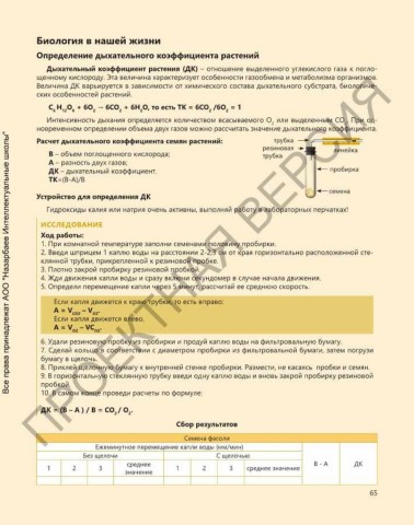 Дыхательный коэффициент растения (ДК) – отношение выделенного углекислого газа к погло-