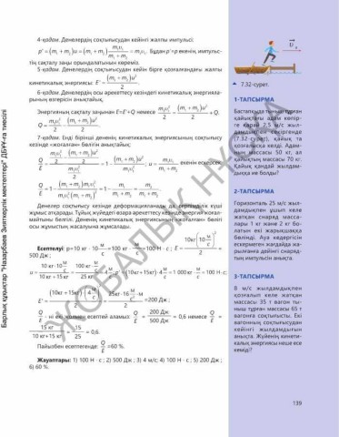 Жауаптары: 1) 100 Н ∙ с ; 2) 500 Дж ; 3) 4 м/с; 4) 100 Н ∙ с ; 5) 200 Дж ;