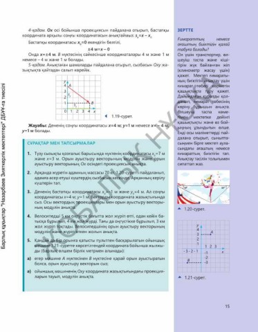 Жауабы: Дененің соңғы координатасы x=4 м; y=1 м немесе x= – 4 м; ыңның ұзындығын өлше.