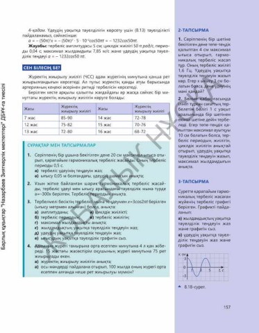 Жауабы: тербеліс амплитудасы 5 cм; циклдік жиілігі 50 π рад/с, перио- бекітілген дене тепе-теңдік