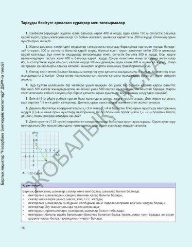 1. Саябақта серуендеп жүрген Әлия батысқа қарай 400 м жүрді, одан кейін 150 м солтүстік бағытқа