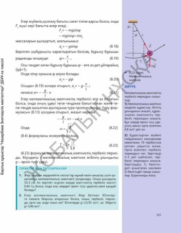 (8.23) формула, математикалық маятниктің тербеліс перио- периодын тап. Зерттеуді