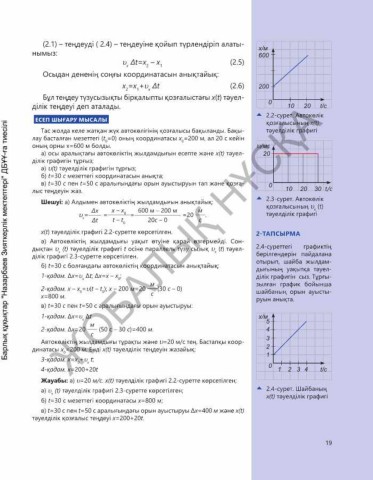 Жауабы: а) υ=20 м/с. x(t) тәуелділік графигі 2.2-суретте көрсетілген;