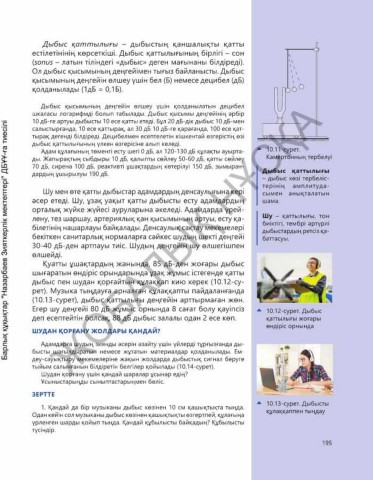 Адам құлағының төменгі есту шегі 0 дБ, ал 120-130 дБ құлақты ауырта- 10.11-сурет.