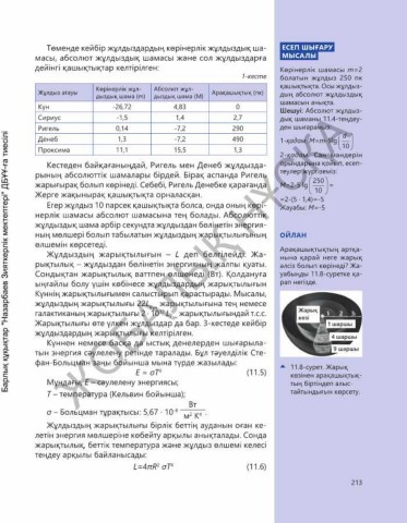 Төменде кейбір жұлдыздардың көрінерлік жұлдыздық ша- ЕСЕП ШЫҒАРУ