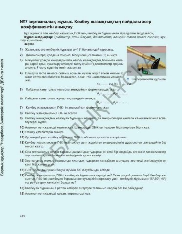 9) Көлбеу жазықтықтың көлбеулік бұрышын өзгертіп, 3-4 тәжірибелерді қайтала және сәйкесінше есеп-