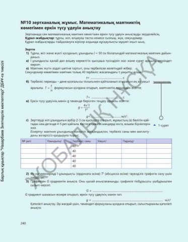 №10 зертханалық жұмыс. Математикалық маятниктің