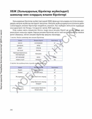 1-кесте. Негізгі шамалар мен өлшем бірліктер