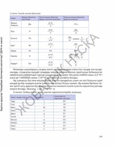 4-кесте. Ондық еселік және үлестік көрсеткіштердің жазылуы