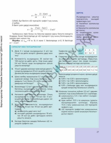 14 м/с-қа дейін өзгертті. Дененің үдеуі неге үдеуін тап. υ/м/с 8,1 5,4 0
