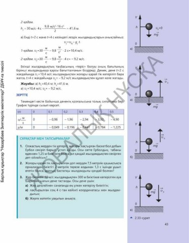 1-қадам. υ =30 – 9,8 2 ∙ 2 с=10,4 м/с.