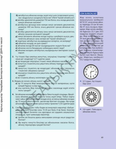 2. Үш тілшесі бар сағаттың минуттық, секундтық тілшелері 1 сағатта лы: Марс тың көлбеулігі