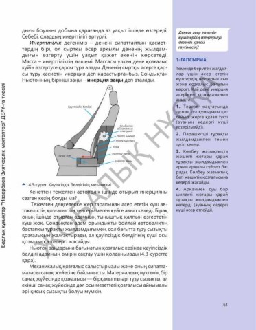 Кенеттен тежелген автокөлік ішінде отырып инерцияны