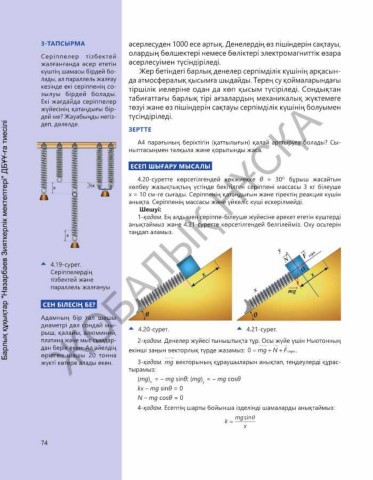 дан берік екен. Ал әйелдің екінші заңын векторлық түрде жазамыз: 0 = mg N + F cepn.