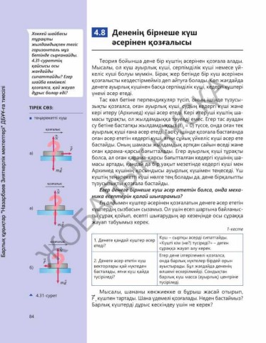 4.31-суреттің Теория бойынша дене бір күштің әсерінен қозғала алады.