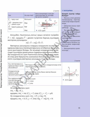 сіндегі күштердің проекциясын (құраушыларын) анықтаймыз.