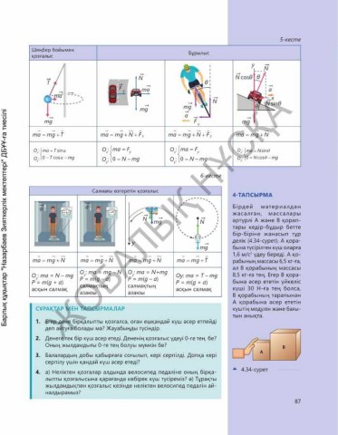 O : ma = N – mg y y Oy: ma = T – mg 8,5 кгға тең. Егер В қора-