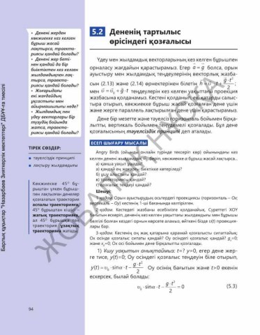 Көкжиекке 45 O бұ- г) қозғалыс теңдеуі қандай?