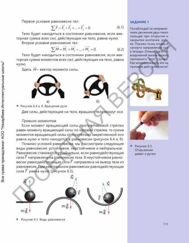 равна нулю и тело находится в равновесии (рисунок 6.4 а, б).