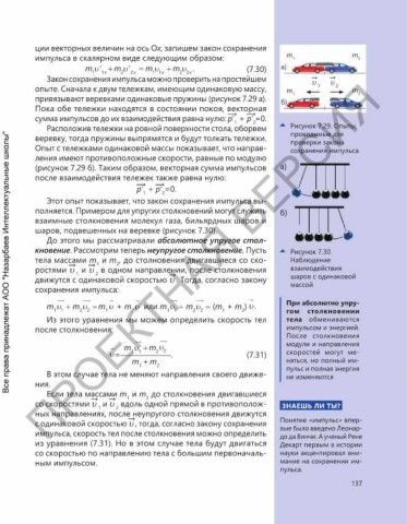 Опыт с тележками одинаковой массы показывает, что направ- сохранения импульса