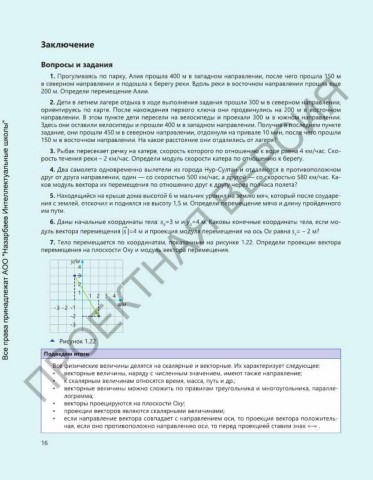 7. Тело перемещается по координатам, показанным на рисунке 1.22. Определи проекции вектора