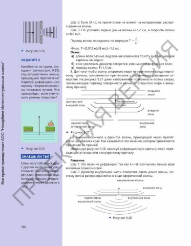 Рисунок 9.25 Используя рисунок 9.28, нарисуй дифракционную картину волн, пере-