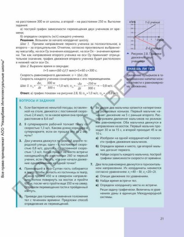 a) построй график зависимости перемещения двух учеников от вре- 200