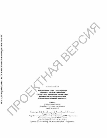 Разработчики дизайн-макета С. М. Жапарова, Ж. М. Абдрасилов
