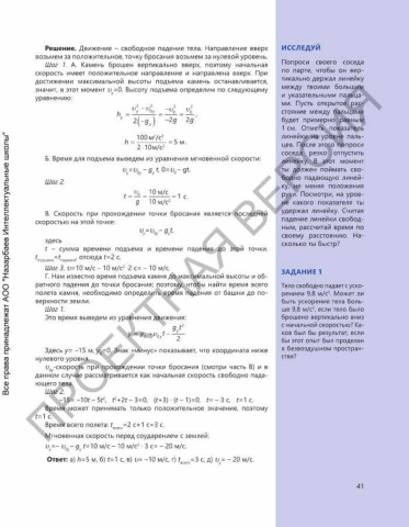 Решение. Движение – свободное падение тела. Направление вверх ИССЛЕДУЙ