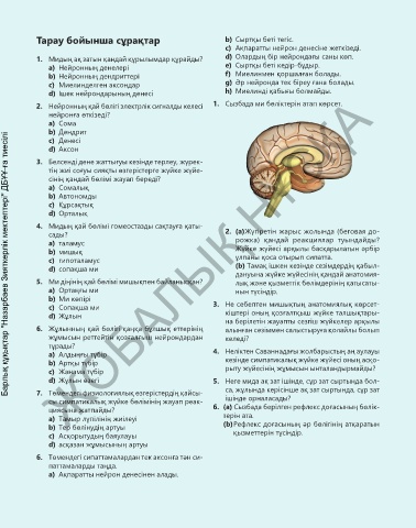 b) Нейронның дендриттері f) Миелинмен қоршалған болады.