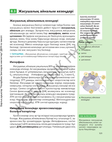 бөлінеді. Жасушада зат алмасу қарқынды жүреді, нәруыздар, Интерфаза