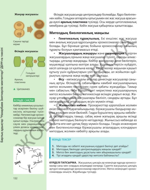 1. Митозды не себепті жасушаның күрделі бөлінуі деп атайды?