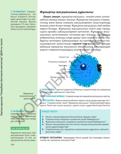 данып, “Сперматозоид” және “Жұмыртқа жасушасы” микропрепараттарын