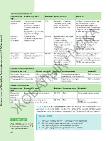 Контрацептив түрі Жұмыс істеу әдісі Кепілдігі Артықшылығы Кемшілігі