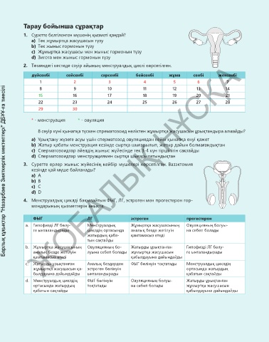 2. Төмендегі кестеде сәуір айының менструалдық циклі көрсетілген.